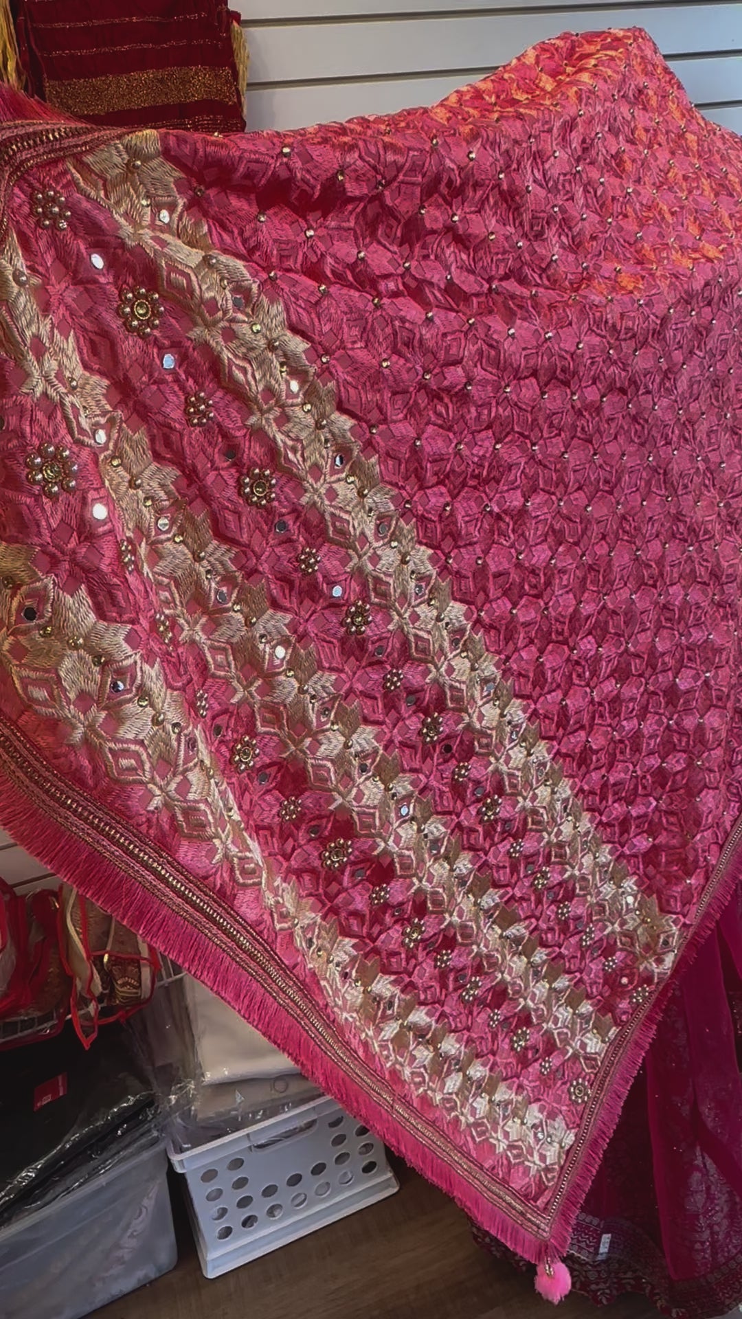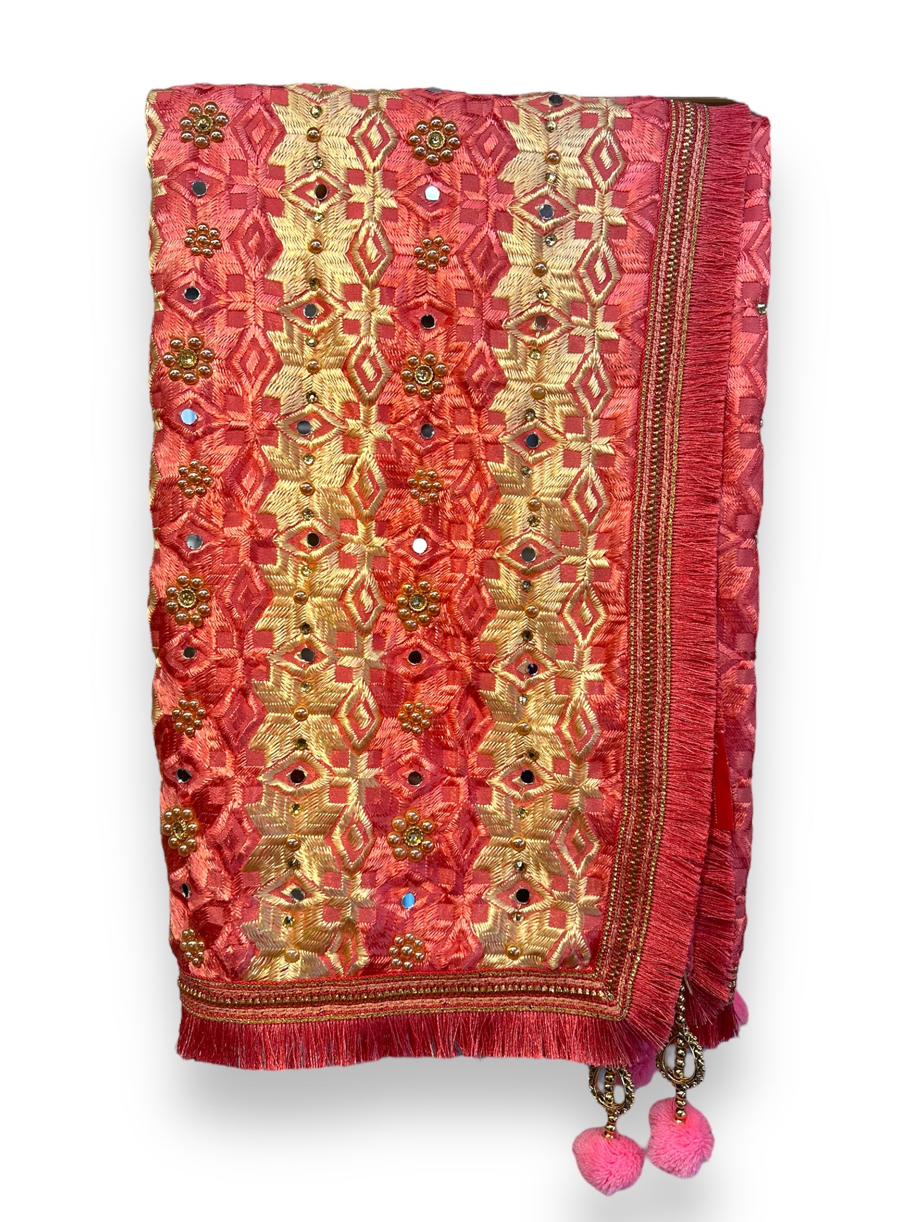 Phulkari Dupatta - Coral